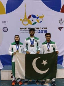 By the grace of Allah Almighty, Pakistani athlete Fatima Irfan secured Gold Medal in Newaza -57Kg, whereas, Dilawar Khan Sannan and Muhammad Ali Rasheed secured Silver Medal in Duo Classic Men category, 3rd Medal was clinched by the duo Dilawar Khan Sannan and Fatima Irfan in Duo Classic Mix category a Silver Medal. Another Silver medal was received by Dilawar Khan in Newaza Men Category of 77Kg. As a total 4 medals were received by Pakistani young squad on 3 members delegation.