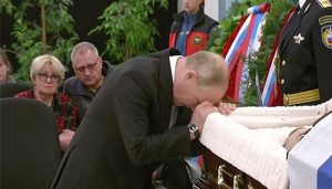 The president fed the coffin twice and kept his head close to it. Vladimir Putin is considered a physically and emotionally strong man.